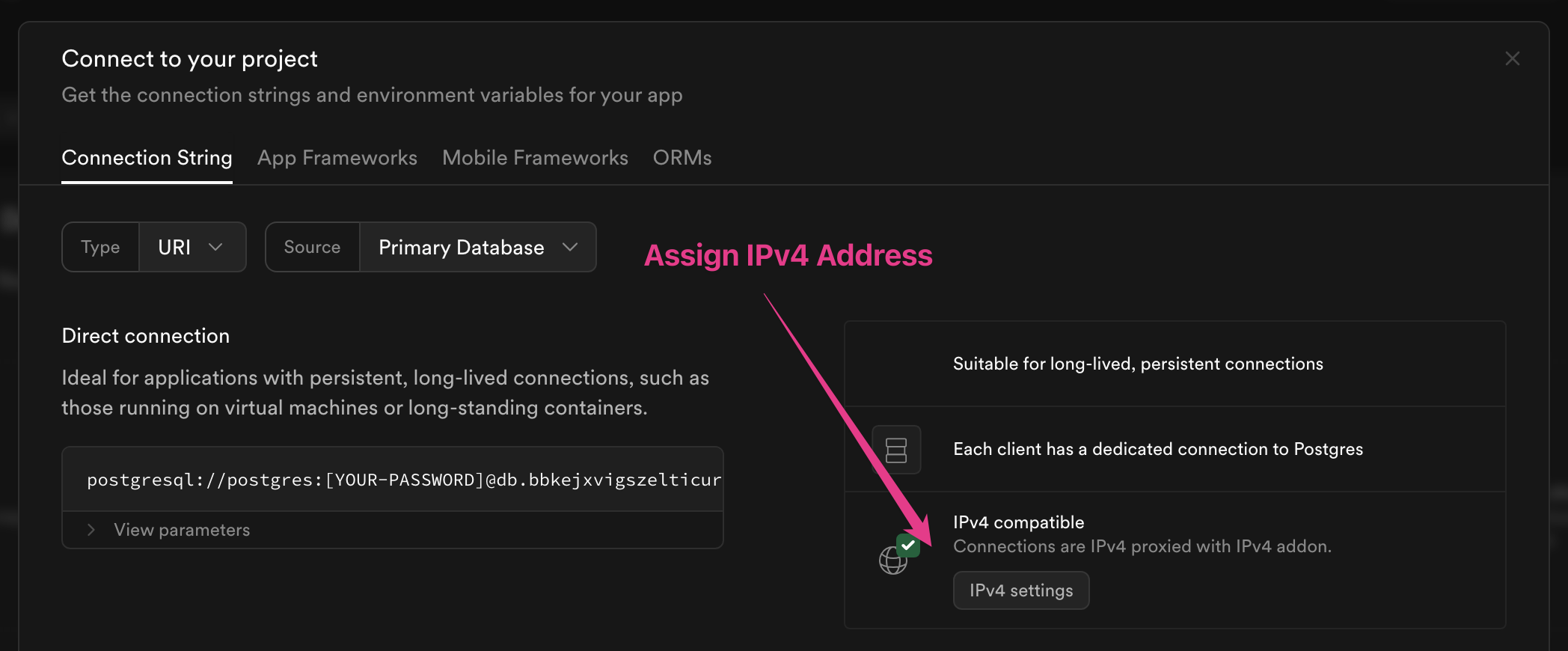 Assign an IPv4 address if you have trouble connecting from residential internet.